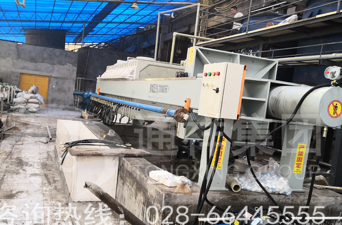 1、 压滤机由机架、滤板、压紧系统(手动、机械、液压三种形式)和电气控制柜组成。