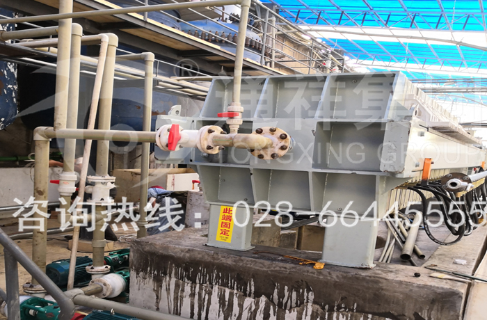5、 板框式压滤机架的结构与厢式压滤机相同,只是过滤部分是一板一框和滤布组成,板框空间是滤室。