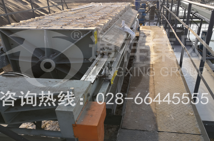 3、 Filter plates are installed on the beam between tail plate and push plate, with filter cloth sandwiched in them.